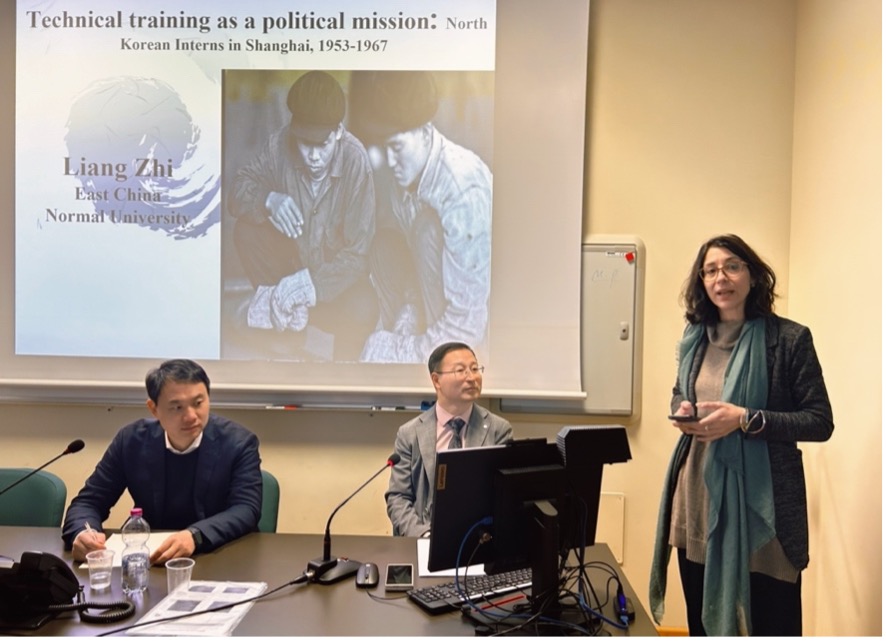 11月6日至7日,代表团访问了特兰托大学。该校人文系系主任马西米利亚诺·班皮接待了代表团一行,并就未来两系之间的多方面合作达成初步意向。梁志教授作主题为“作为政治任务的技术培训:朝鲜实习生在上海(1953-1967)”的学术讲座,在场的意大利师生与梁志教授进行了热烈的学术讨论和对话。
