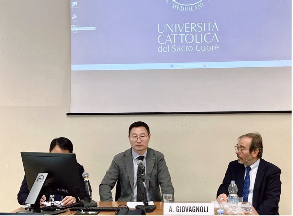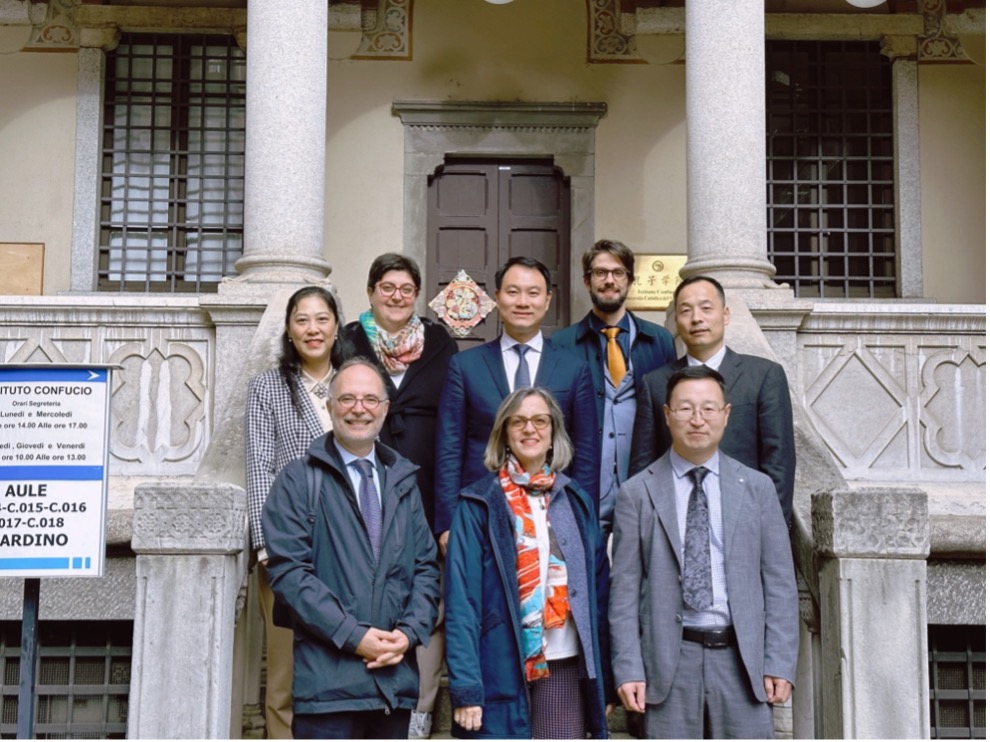 11月4日,代表团参加由米兰圣心大学世界历史研究中心与圣心孔子学院联合举办的“中欧文化交流史”工作坊。本次工作坊由意大利历史学会会长、圣心大学98堂 主任、孔子学院科学委员会委员乔万里教授主持,圣心孔子学院意方院长竺易安、圣心大学外语系中文项目负责人兼孔子学院教学顾问夏慕华、孔子学院中方院长梁清及部分孔子学院教师、圣心大学米兰校区相关专业师生参加了此次活动。