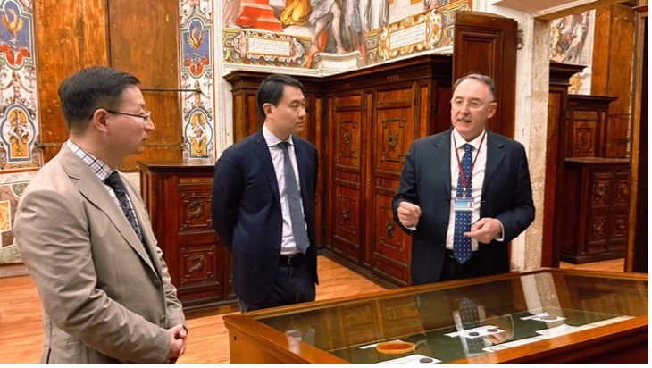 随后,代表团拜访了罗马宗座档案馆馆长龙扎尼和传信历史档案馆馆长贝洛米尼,并就中意友好交往史料文献的整理、翻译和研究达成了初步合作意向。