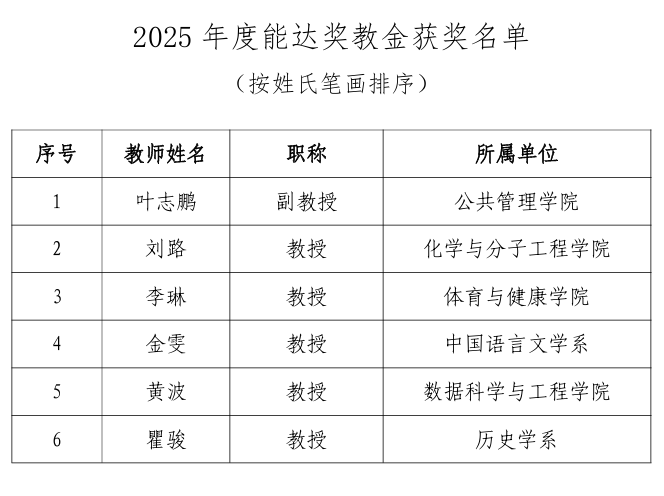 近日,本科生院公布2025年度能达奖教金评审结果,98堂 瞿骏教授荣获该奖励。能达奖教金旨在表彰爱岗敬业、在教学岗位上作出突出贡献的教师,每年评选一次。