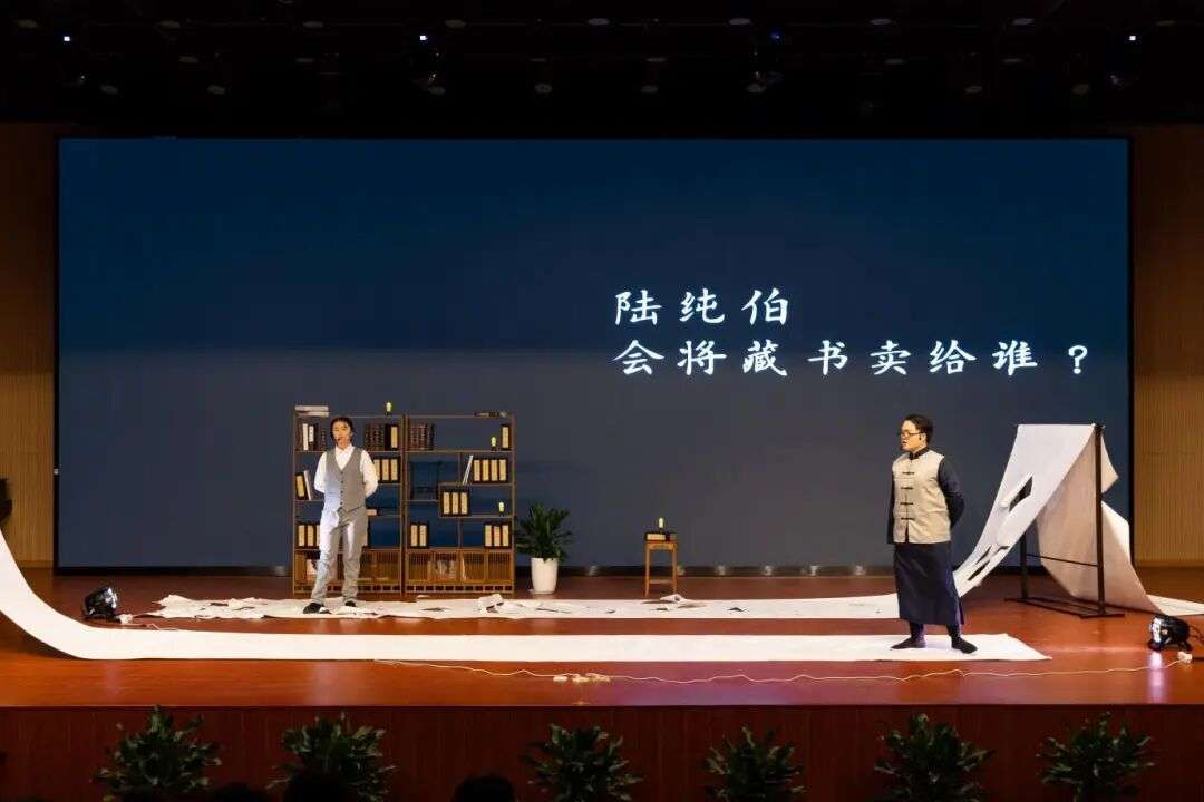 表演中,我着力揣摩瞿启甲先生面对古籍时的敬畏之心、与同道者共谋文化传承时的赤诚之态。当台词中提及“藏书非私藏,乃为后世存文脉”时,我深刻体会到,那个风雨飘摇的年代里,知识分子以典籍为薪火,守护中华文脉的执着与不易。瞿启甲先生将嘉业堂藏书供《四部丛刊》影印采用,这种“开放共享”的藏书理念,打破了私家藏书的壁垒,更彰显了文化传承的公心。