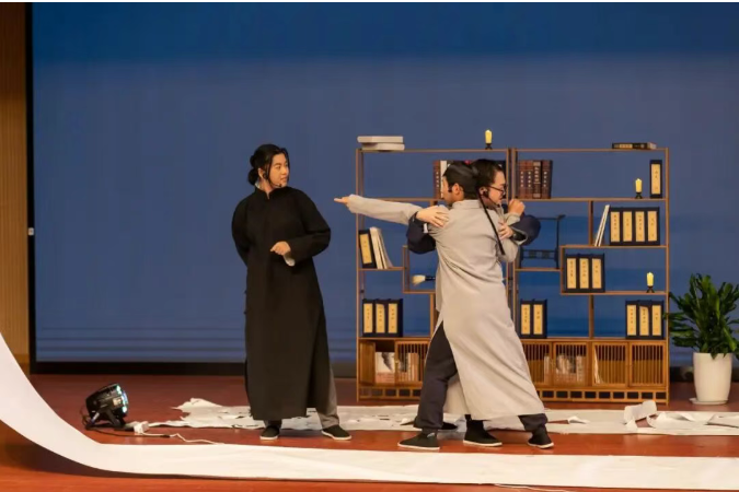 站在舞台上,身着长衫的那一刻,我仿佛跨越了百年时光,与瞿启甲先生的精神世界产生了深切共鸣。作为铁琴铜剑楼的主人,他以私人藏书之力量,呼应张元济先生影印古籍、传承文脉的宏愿,将珍本秘籍公之于世,这份“以书续命”的担当,在排练与表演的每一个瞬间都让我备受震撼。
