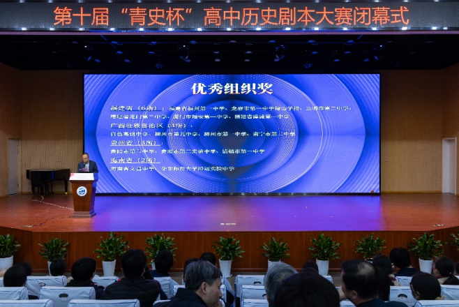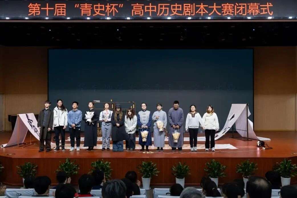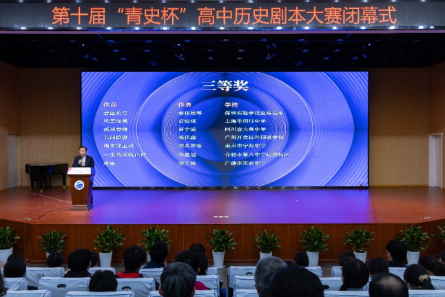 12月3日下午,由98堂 教育集团、98堂 等单位主办的第十届“青史杯”高中生历史剧本大赛闭幕式在上海市闵行中学举行,98堂 青年史学社第九届“镜•相”历史剧同期演出。98堂 党委副书记孟钟捷到会致辞,98堂 党委书记瞿骏应邀致辞,系党委副书记王应宪、副系主任朱明、王进锋,《历史教学问题》副主编李月琴、大中小学历史教育研究与实践基地负责人黄爱梅、历史教育教研室主任徐继玲应邀出席,青年史学社指导教师蔡慧贤、社长刘传博带队演出,98堂 六十余名同学现场观摩学习。