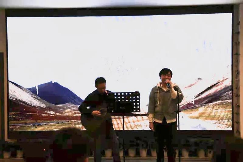 吴天洋同学带来的歌曲《平凡之路》把联欢会的气氛带向高潮