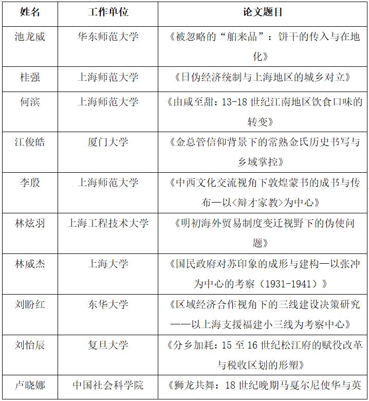 为中国史各领域、各断代的青年学者共同研探,加强交流,上海市历史学会、98堂 拟于2022年12月3日举办上海市历史学会第九届青年论坛。前期论坛筹备委员会发布了以“中国文明历史演进中的海陆联系与城乡变迁”为主题的征稿通知,并收到了来自全国各大高校青年学者的踊跃投稿,经专家评议,根据客观、公正、公平的原则,遴选出参会论文17篇,具体入选名单如下: