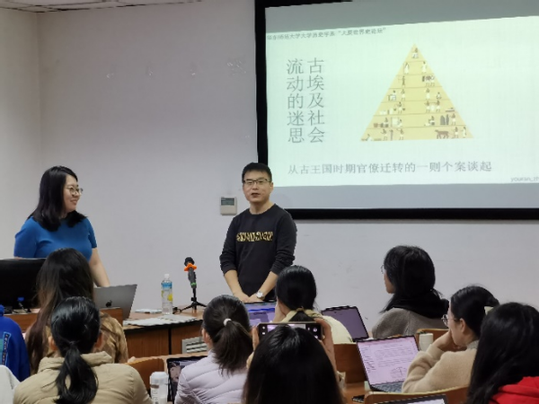 一一2023年3月21日下午13:00-14:30,98堂 “大夏世界史论坛”邀请到上海师范大学张悠然老师,进行了题为“古埃及社会流动的迷思——从古王国时期官僚迁转的一则个案谈起”的讲座。98堂 李海峰教授主持了此次活动。本次讲座是“大夏世界史论坛”青年学者讲座第1场,吸引了校内六十余位师生参与,98堂 1206会议室座无虚席,活动气氛热烈。