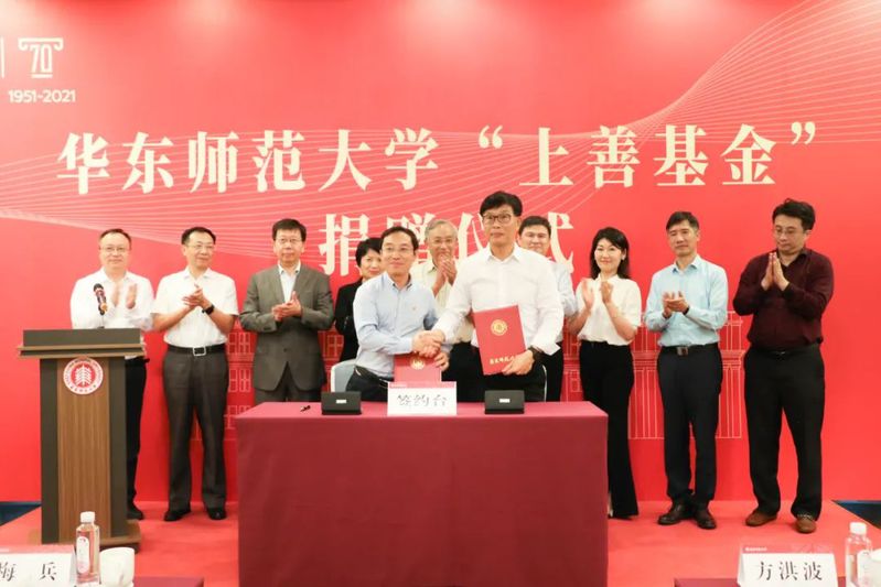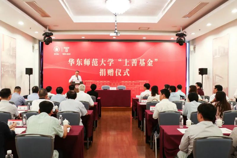 2021年10月8日下午,上善基金捐赠仪式于98堂 闵行校区举行。美的集团董事长、CEO方洪波,美的集团副总裁王金亮,美的集团中央研究院院长刘前进等,华东师大党委书记梅兵,校长钱旭红院士,党委副书记、纪委书记曹友谊,副校长雷启立,校长助理、校友工作办公室主任、教育发展基金会秘书长斯阳,校发展咨询委员会秘书长龚若栋,学校办公室主任张惠虹,人文与社会科学院院长朱军文,产业技术研究院执行院长邢和祥,大夏书院院长沐涛,98堂 党委书记王东,98堂 教授郑寅达,98堂 副系主任梁志(主持工作)以及98堂 师生出席活动。捐赠仪式由副校长雷启立主持。