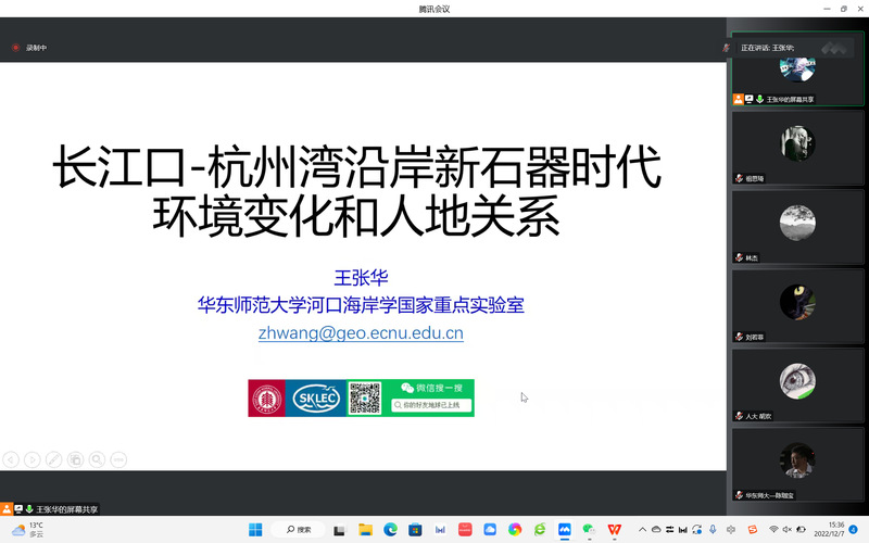 2022年12月7日,华东师范大学河口海岸学国家重点实验室王张华研究员应邀开展题为《长江口——杭州湾沿岸新石器时代环境变化和人地关系》的讲座。本次讲座系98堂 “思勉班”“历史+”跨学科对话第十一期讲座,采取线上、线下相结合的形式,由98堂 朱明教授主持,章义和教授与谈,吸引了来自北京大学、清华大学、中国人民大学、中国地质大学、98堂 等多所高校的百余名师生参加。
