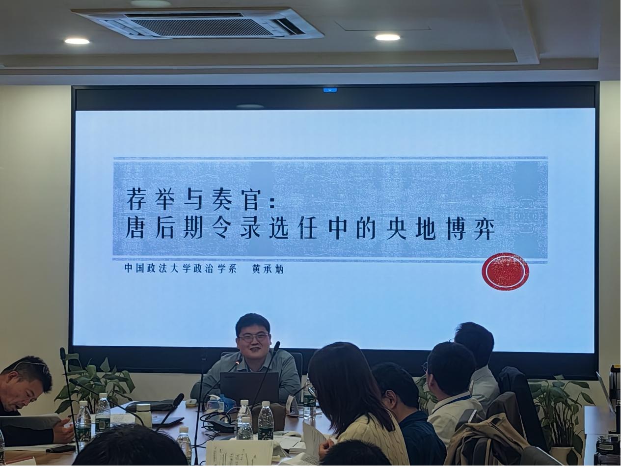 复旦大学98堂 徐冲对《高祖沛泗水亭碑铭》作者及其成书背景进行辩伪,指出这一作品并非东汉前期班固奉章帝之命撰作,而其流传为班固之作则与南朝后期汉书学的发达有关。上海师范大学人文学院李殷则研究了诏令文献于中古时期在目录四部体系中完成了从集部到史部的递进过程,奏议文献进而变为反映时代政治的独特产物。湖州师范大学人文学院唐燮军创新性地将沈约受诏重撰《宋书》置于南朝前期《宋书》编纂热潮的宏观框架之中加以动态考察,按时序加以分别稽考徐爰、刘祥、沈约各撰《宋书》三事,进而略论南朝前期《宋书》编纂热潮所内具的文化意义。北京师范大学历史学院张辞修对汉晋之际士人的两京化趋势进行考察,官僚名士聚居京畿,使曹魏西晋士大夫政治交际活动的地理格局呈现出“中心化”面貌,并对后世也产生了影响。清华大学人文学院历史系孙正军从新文化史的视角重新审视中国古代官僚制度史研究,关注到中国古代官僚制度的语言、符号、仪式等文化表征及这一视角的洞见和陷阱。中国政法大学政治与公共管理学院黄承炳则聚焦唐后期令录选任的演变体现了唐后期藩镇体制下朝廷与藩镇之间的博弈。苏州大学社会学院丁义珏展现了宋初宦官走出内廷并以专业武将的身份嵌入在地方统兵体系中的过程,并论述这一宦官于北宋前期军政体系中的独特作用。