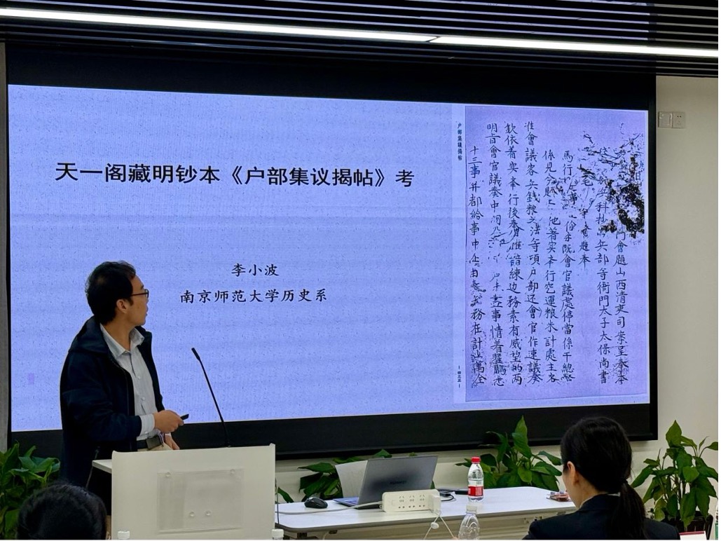 武汉大学历史学院吴淑敏探究泽潞地区乡管体制与信仰活动中村社联盟之间的关联。南通大学历史文化学院朱永涛分析明代地方官与地方矿监税使间的博弈模式,探讨历史书写和历史史实间的偏差。南京师范大学社会发展学院李小波关注到天一阁藏《户部集议揭帖》的文献性质问题,并揭示其与孤本钞本《户部题稿》之间的关系。浙江师范大学人文学院李义琼与98堂 朱倩宇关注万历末年户部强制借发皇帝金花银事件,辨析辽饷概念,并分析饷务管理牵涉的中央各部门间财政关系。上海社会科学院历史研究所蒋宏达总结学界关于明代赋役黄册研究主要存在三个阶段,在此基础上,以遂安黄册与休宁黄册为例探讨明赋役黄册研究的更多可能性。上海交通大学历史系王智尧研究明代嘉定县水利劳役制度的发展与变迁,揭示其在不同历史时期与社会经济条件下的调整与震荡。上海交通大学历史系赵思渊考察清代中叶常熟地区的善堂、义庄等公产组织,指出其不仅具有慈善功能,也参与维持地方社会秩序,是清代江南地方政治的核心机制。地方士绅将土地捐入善堂、义庄获得政治保护,同时利用义田避税,这成为清代中叶漕粮征缴中的严重问题。