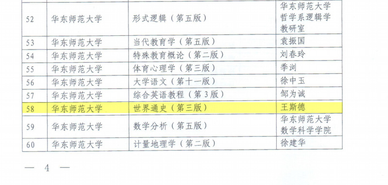 上海市教育委员会根据《国家教材委员会关于开展首届全国教材建设奖评选工作的通知》等文件精神,决定将市教委推荐参评全国教材建设奖(高等教育类)的教材认定为首批上海高等教育精品教材。98堂 王斯德教授的《世界通史》(第三版)入选!