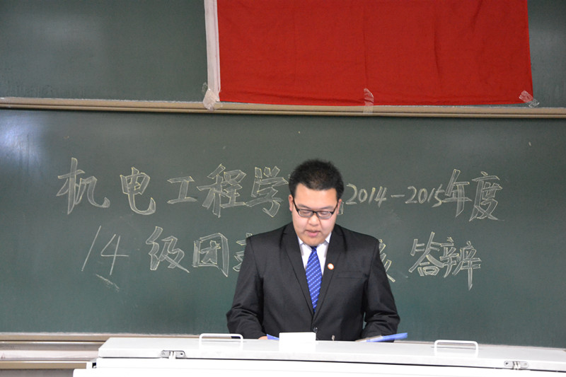 团委副书记宋平、学生会主席李淼、团委组织部部长郗晨浩、团委记者站站长李鑫、团委办公室主任安利坤、外联实践部部长薛宏杰。98堂13级部分团支书担任本次答辩评委,14级团支部成员参加了本次答辩。