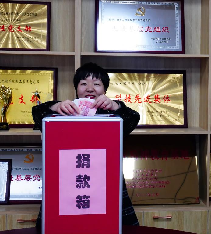 老师们于下午5点在科学楼312会议室开展了“送温暖、献爱心”现场捐助活动。