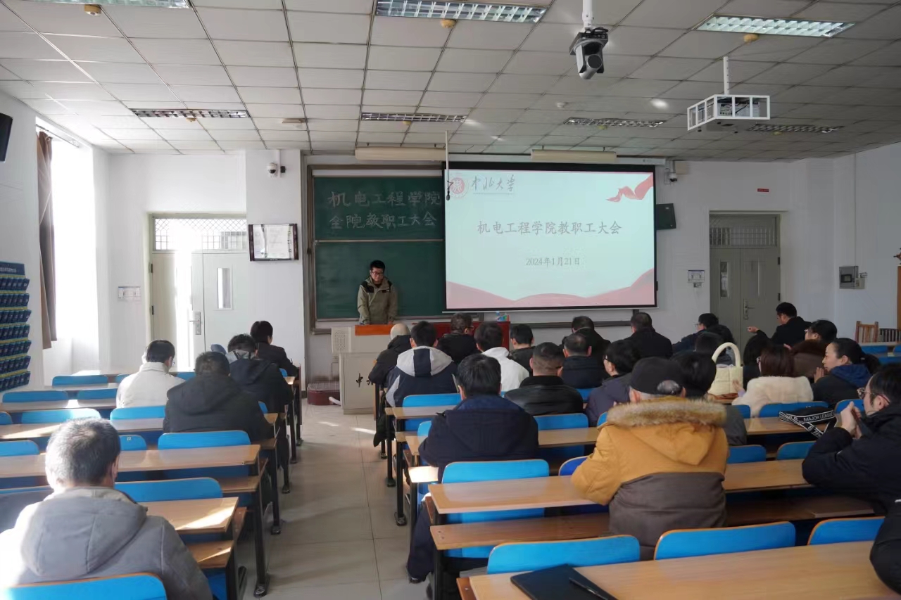 在11205H教室召开期末全院教职工大会,全体教职工参加了本次会议。会议由院党委书记赵永娟主持。