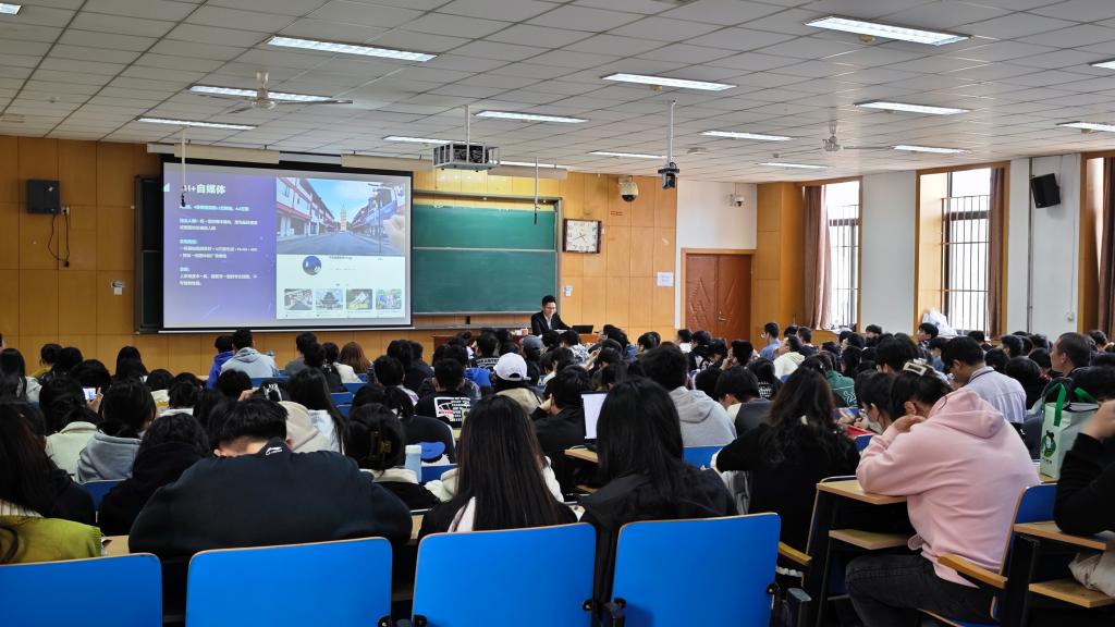 董老师首先介绍人工智能的基本概念和发展历程, 指出人工智能技术的核心内容和应用领域。随后,结合实际案例,生动地展示了人工智能在学术资料收集、文案撰写、PPT制作等方面的应用,激发了在座学生对人工智能技术的浓厚兴趣。讲座还围绕着如何利用人工智能推动创新创业展开讨论。董老师指出,人工智能技术的不断发展为创新创业提供了无限可能,希望广大学生积极探索、勇于创新,将人工智能技术与创新创业实践相结合,共同推动社会进步和经济发展。