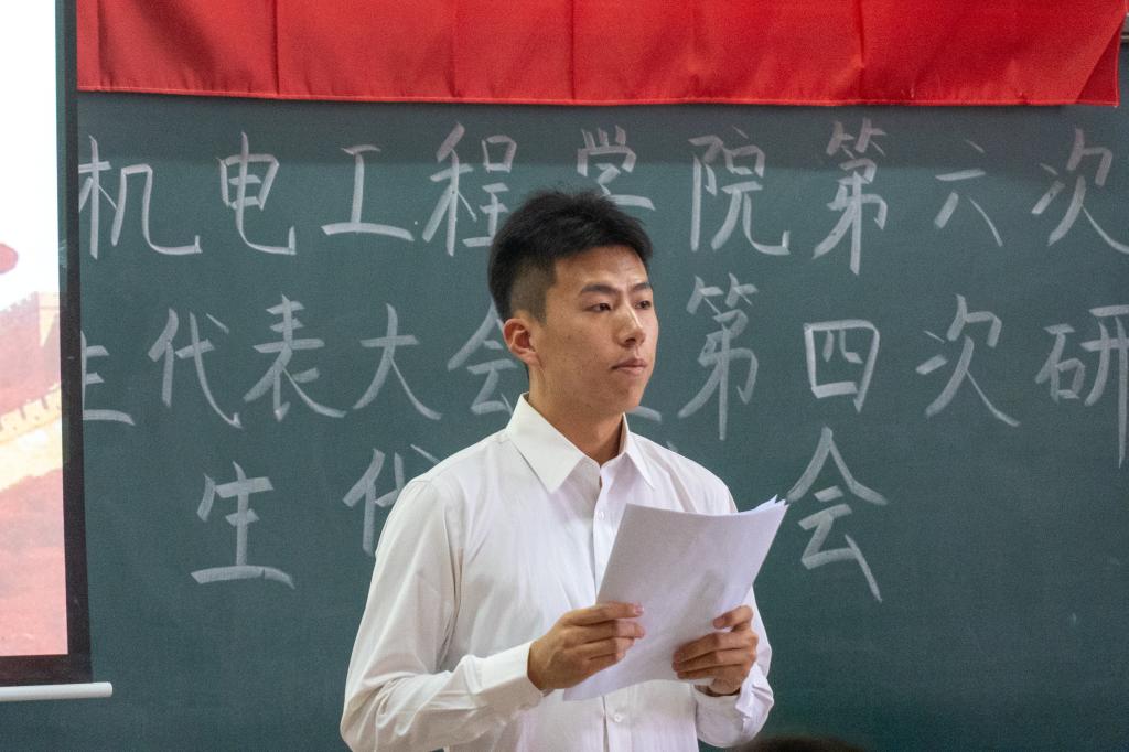 发来的贺信后,上一届学生委员会主席团成员秦鹏做工作报告,分析总结了上一学年学生会各部门的工作任务完成情况与各项活动举办情况,学生会取得了一系列令人瞩目的成绩,同时也对下一届学生会工作提出建议,希望全体学生骨干有责任、有担当,以更饱满的热情,投入到服务同学中去。