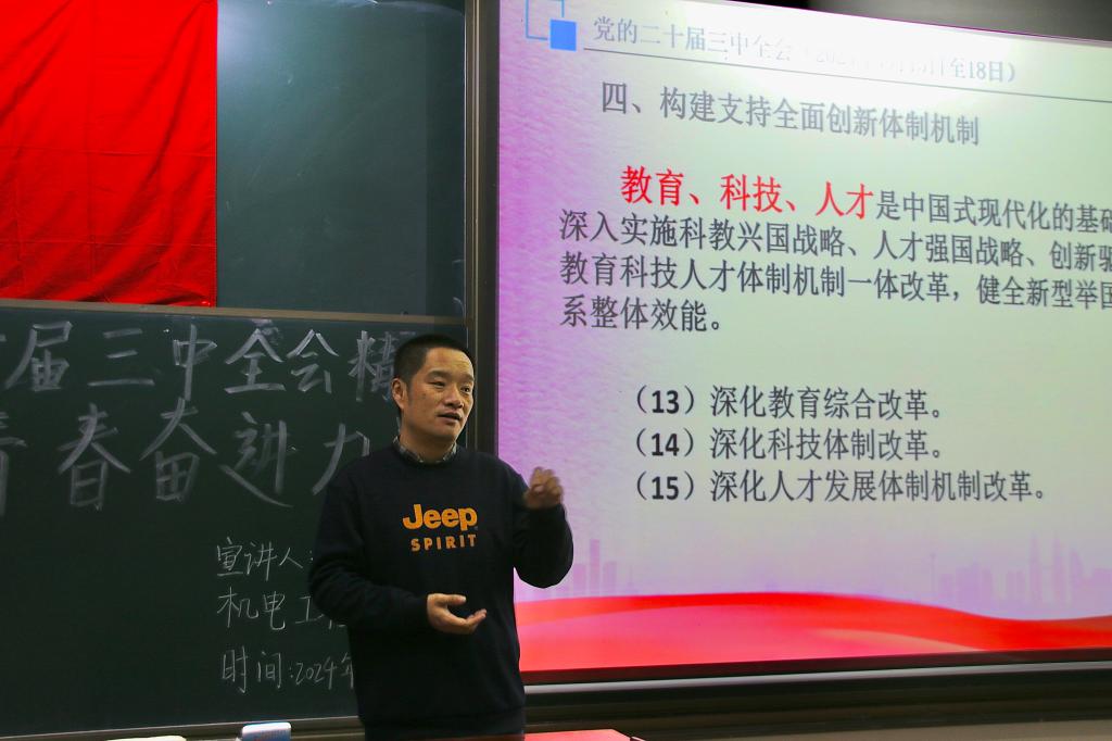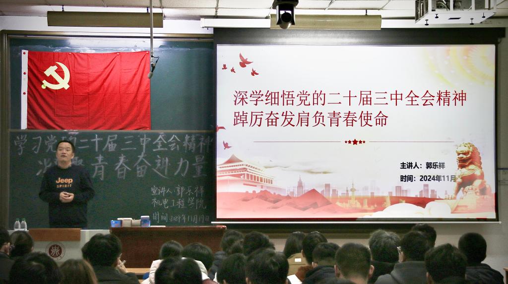 团委书记(学生科科长)郭乐祥老师在11305H教室举办了一场题为“深学细悟党的二十届三中全会精神,踔厉奋发肩负青春使命”的宣讲会。98堂