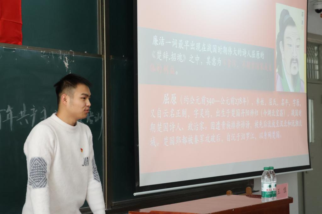 团委副书记王佳为我们带来“育廉洁风气,做廉洁青年”的分享,全体成员进行了讨论并踊跃发言。