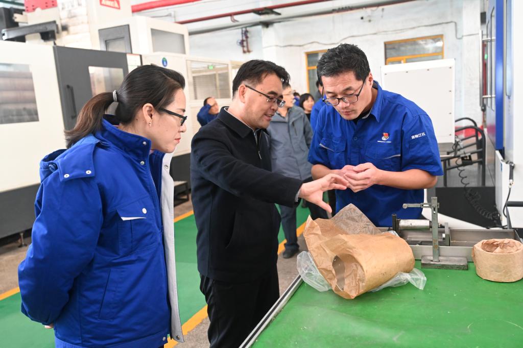 卓越工程师实习实训基地揭牌,并陪同参观了公司展室、物流车间、机加车间和表面处理车间,详细介绍了公司发展历程、生产状况和研发成果。