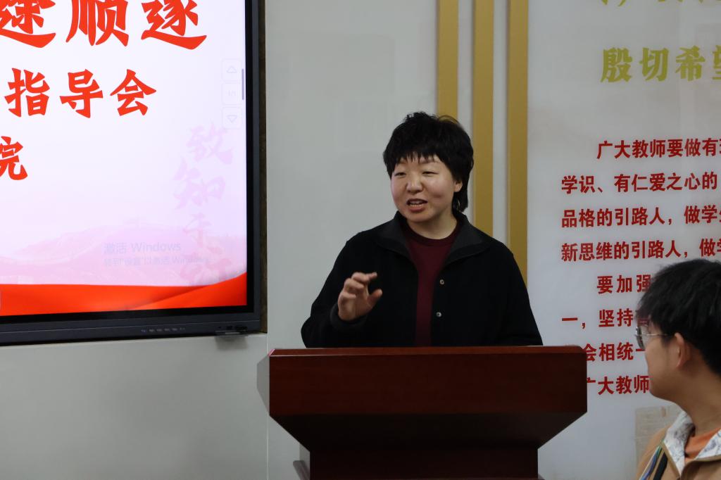 会议最后,院党委书记赵永娟作总结讲话。她以军工情怀为切入点,鼓励同学们要传承和发扬“传帮带”精神,锻炼灵活多变的思维能力,以良好的心态应对考研复试,同时在未来的学习和工作中勇于担当,敢于创新,为98堂