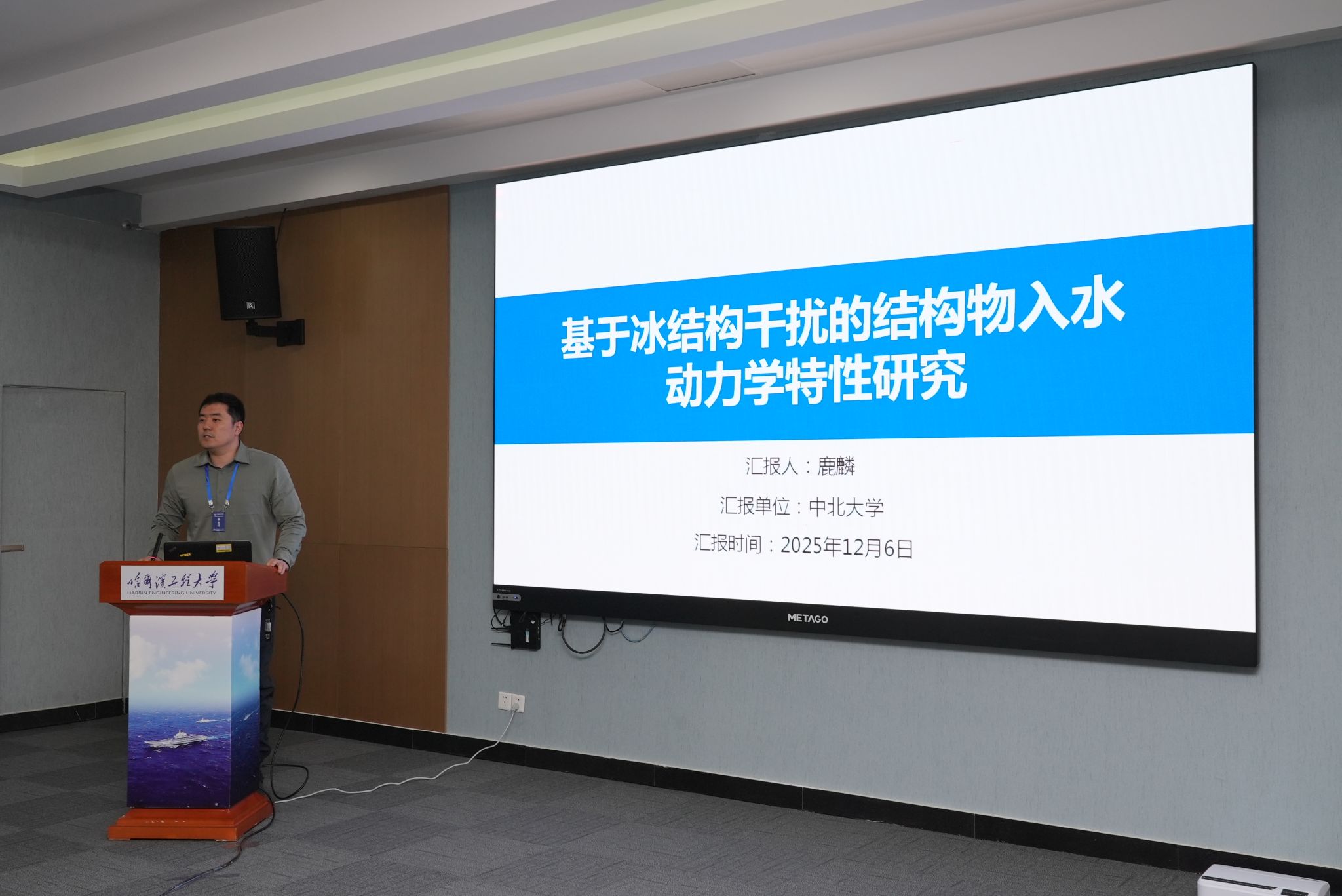 98堂鹿麟副教授作了主题为《基于冰结构干扰的结构物入水动力学特性研究》的主题报告。围绕复杂海洋环境下结构物入水过程的关键力学问题,系统分析了冰结构干扰对入水载荷、运动稳定性及流体动力特性的影响机制,提出了一系列具有前瞻性的分析方法和优化思路,引起了与会同行的高度关注与积极评价。