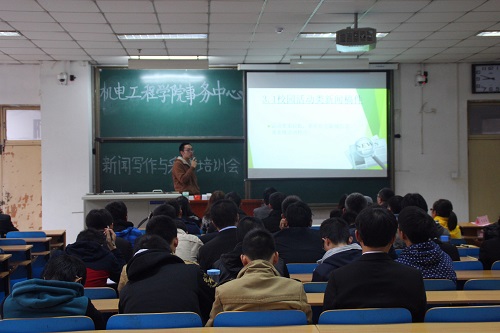 学生事务管理中心在主楼11105H举行新闻写作与采访培训会。院党委副书记刘光老师,学生科科长张丽花老师,学生科段雪倩老师,杨博炜老师,于晶老师共同出席此次培训会。