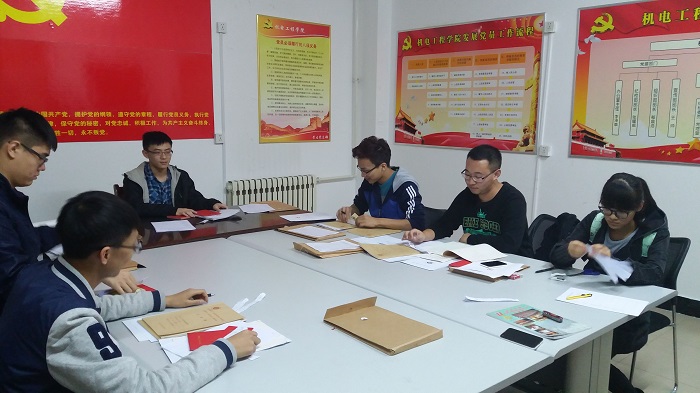首先张耀威同志将个人入党材料发到每个人手中,进行材料的自查和互查,他详细地为大家说明了入党材料的各项要求,每个人都进行了认真的核对检查,并交换材料进行互查,确保了材料正确齐全。接着,张耀威同志为新一批的重点发展对象介绍了新的考核标准,大家依照新的考核标准从基本素质(包括工作能力,文体活动和创新、学科拓展能力),支部考核,材料书写和团支部推优比重四个方面来进行填写自己的量化统计表格。然后由每位同学依次宣读自己的各项加分及总分,并由大家讨论,无异议后举手通过。最后张耀威同志又为大家详细讲解了新的入党流程,并指出大家现在所处的阶段,鼓励大家再接再厉,争取早日入党。