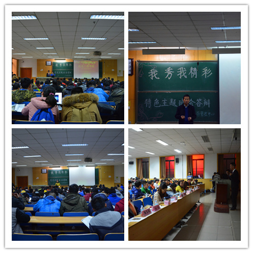 举办的“我秀我精彩”特色主题班会答辩会,各班答辩人通过PPT、视频等形式将本班班会的策划初衷、开展情况以及会后效果等进行一一展示,由评委对其展示评分。最后,综合初赛、复赛、决赛的成绩,决出优秀主题班会开展班级。