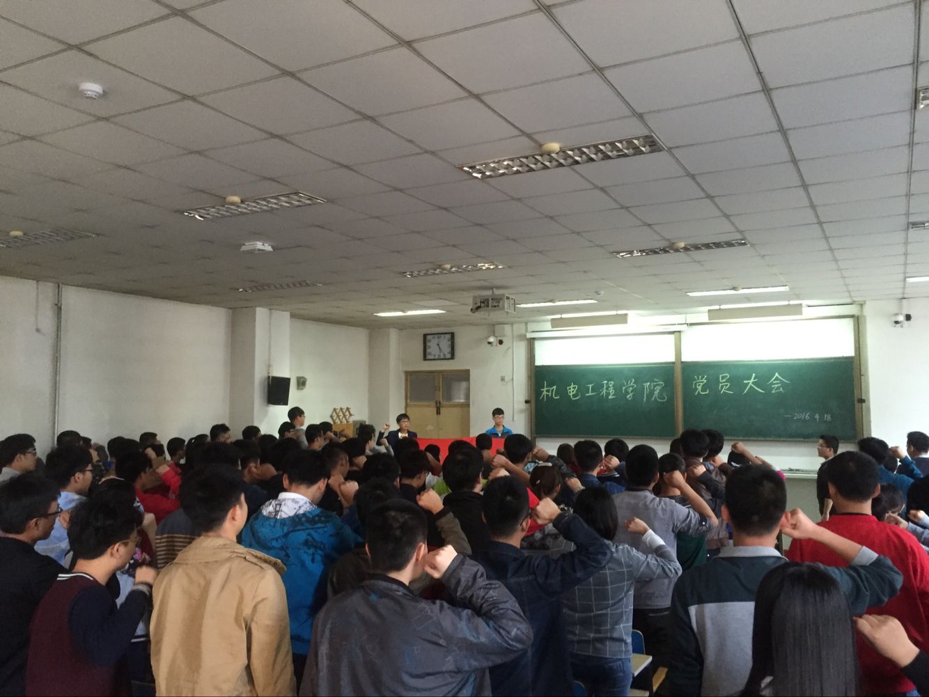 大会最后,在高旭同志的带领下全体党员重温了入党誓词,此次大会让全体学生党员深深感受到党员的责任、使命、荣耀,在今后的学习、生活和工作中,时刻以党员的标准严格要求自己,时刻以党员的先进性鞭策激励自己,发扬优良传统,坚定理想信念,牢记职责使命,奋发进取、用心工作,立足自身岗位,以更加高昂的精神、更加优异的成绩对98堂