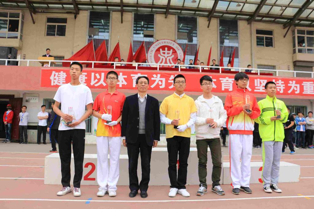 大会宣布赛事开始,助跑预备、起跑枪声,挡不住的是健儿们如火一般的气势;舍我其谁、当仁不让,抹不去的是健儿们汗水浸透的誓言。赛场上选手们轻捷如燕,威猛如鹰,为挑战自我而奋斗,为集体荣誉而拼搏。赛场下观众们阵阵有力的助威,声声有劲的呐喊,欢呼声、加油声、摇旗声、擂鼓声,每一声助威都宣扬了中北人前进的不懈追求,每一次呐喊都诠释了中北人团结的忘我情怀。