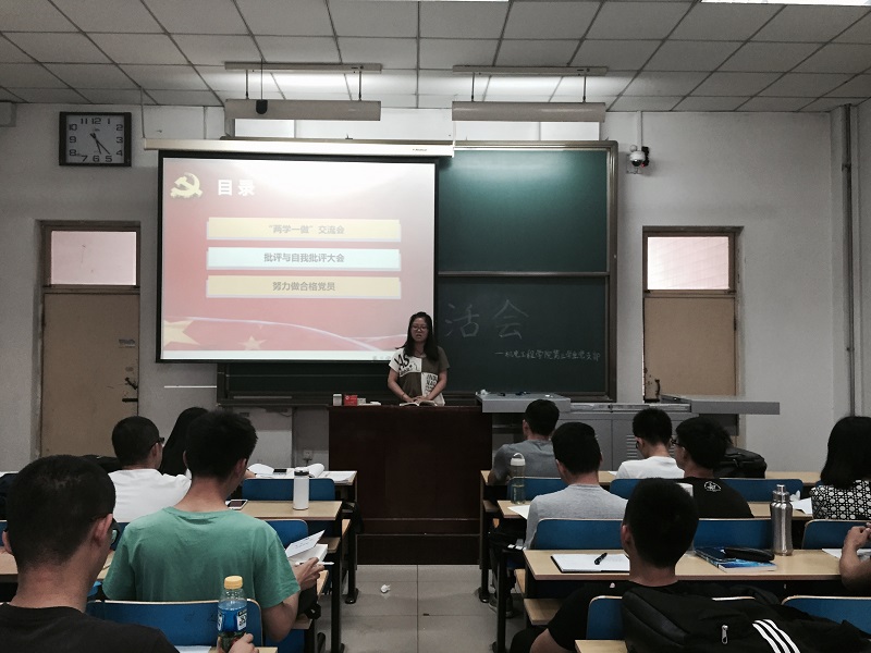 首先,崔金珂同志阐述了“两学一做”的含义,两学即“学习共产党党章党规,学习贯彻习近平总书记系列重要讲话精神”,一做即“做合格党员”,接着崔金珂同志发表了自己对于“两学一做”的理解,他着重强调了其中的两点:一是着力解决一些党员理想信念模糊动摇的问题,对于此点,他针对性指出本党支部的一些问题,并希望大家改正;二是着力解决一些党员宗旨观念淡薄的问题,与此同时,他指出支部内某些同志工作消极,不作为、不会为、不善为、逃避责任等问题,并对他们进行严厉的批评;接着,崔金珂同志开始进行批评与自我批评,指出自我身上的缺点并对党支部个别有缺点的同学进行批评;之后,党支部的正式党员与预备党员依次上台表述自己对“两学一做”学习的感悟以及进行批评与自我批评;最后,崔金珂同志对此次大会做了总结,他希望大家能利用空闲时间对“两学一做”进行更深入的了解以及对于今天批评与自我批评所指出的问题予以改正。