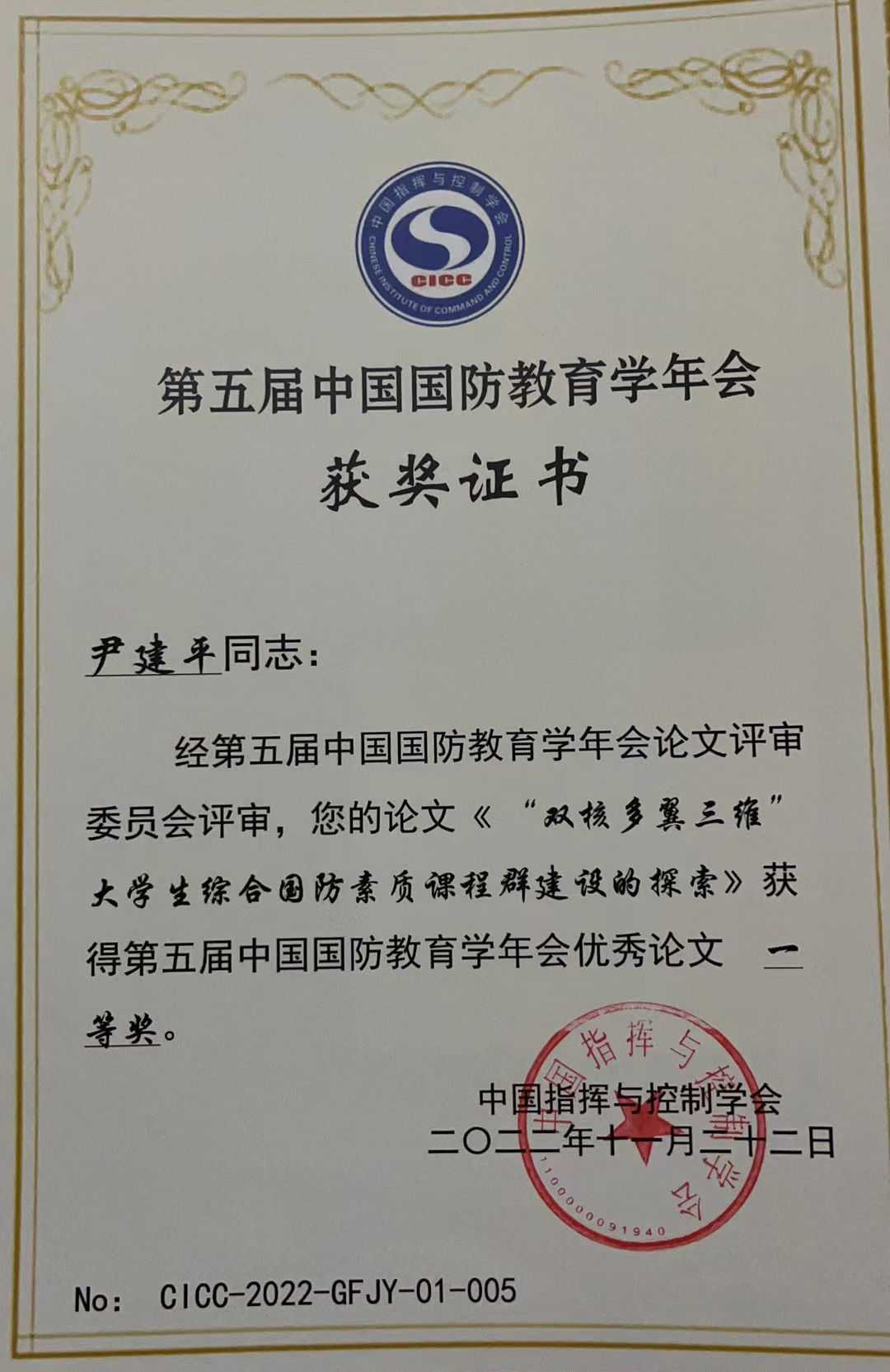 我校作为教育部首批“国防教育特色院校”,是中国指挥与控制学会国防教育专业委员会副主任委员单位,我校三位教师受邀参加此次年会。其中,蔺玄晋副教授代表学校做了题为“大学生综合国防素质课程群建设的探索与实践”主题发言,尹建平教授作为教育部普通高校军事教学指导委员会委员和中国指挥与控制学会国防教育专委会副主任委员,代表年会秘书处宣读了2022年中国指挥与控制学会国防教育专项课题立项名单。此外,蔺玄晋副教授申报的课题《普通高校“五位一体”国防教育教学资源库建设研究》获批重点课题;尹建平教授提交的论文《“双核多翼三维”大学生综合国防素质课程群建设的探索》、蔺玄晋副教授提交的论文《兵棋推演赛事大众化普及化的探索与实践》分获年会高水平论文一等奖,班惠英老师提交的论文《革命文化融入新时代大学生国防教育的三重逻辑》获年会高水平论文三等奖,凸显了学校深厚的国防底蕴和在全国高校国防教育领域的领先地位。