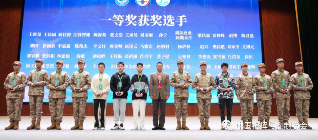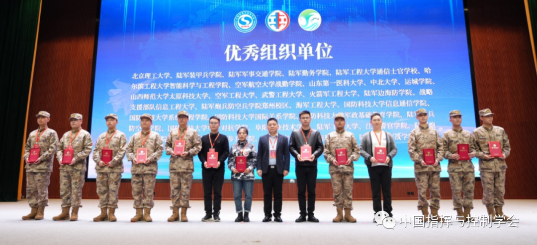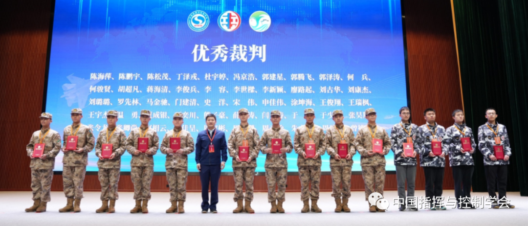 周刚院长、张勇副院长,学会智能博弈与兵棋推演专委会黄金才主任、金磊副主任等领导分别为获奖选手、指导老师、优秀裁判、优秀组织单位、特别贡献单位颁奖。中国指挥与控制学会理事长费爱国院士,安徽省张红文副省长,省发改委徐成然副主任,黄山市孙勇市长,国防科技大学系统工程98堂