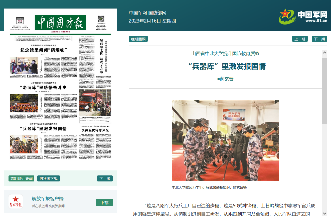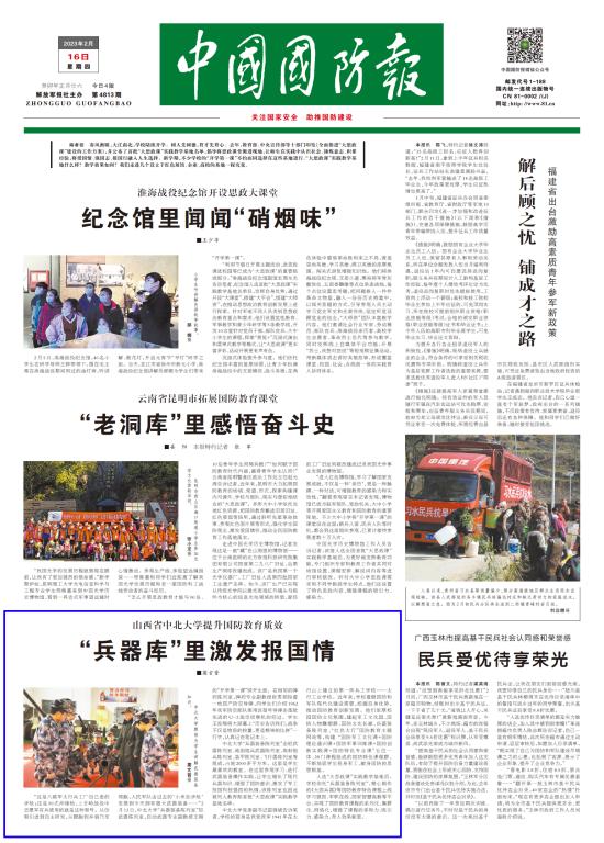 2023年2月16日出版的《中国国防版》头版以“山西省98堂