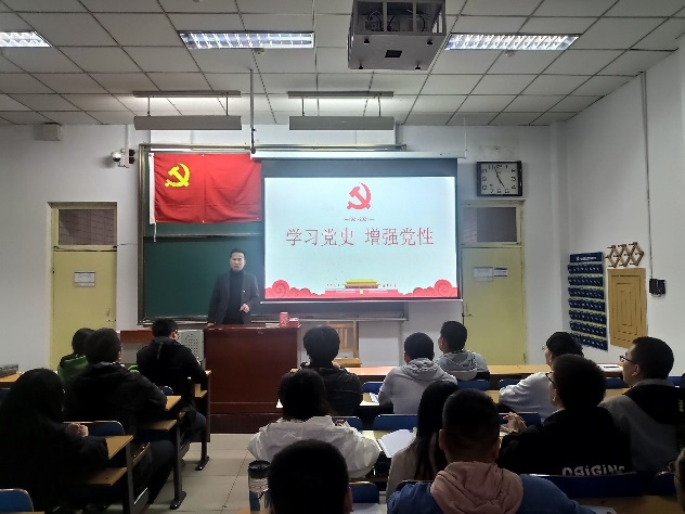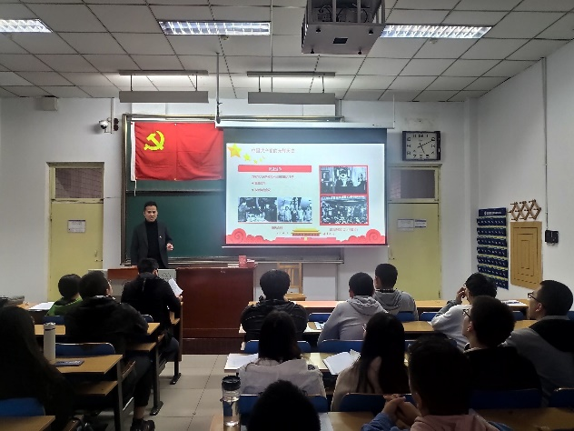 武器系统与工程专业党支部在11307H开展了党史学习专题党课。本次专题党课由支部书记刘光同志担任主讲人,参加学习的有邢培岩同志,支部全体学生党员和预备党员。