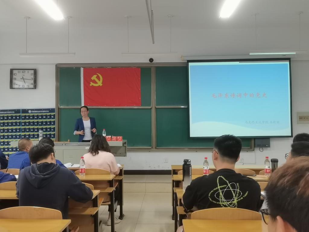 2021年5月25日下午,弹药工程与爆炸技术专业党支部与晋西集团江阳公司七分厂党支部在15204H教室开展以“毛泽东诗词中的党史”为主题的党课学习,并邀请到马克思主义98堂