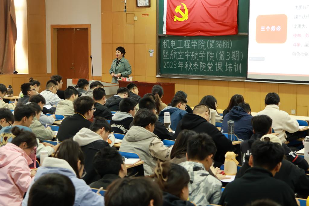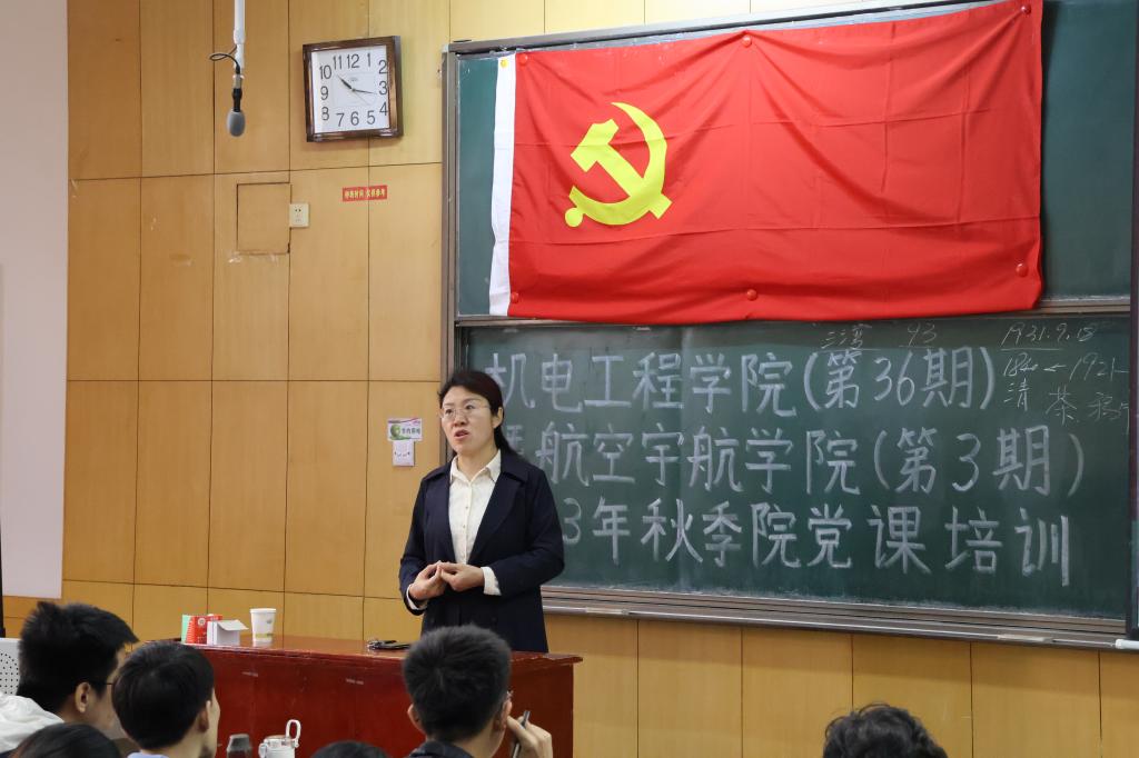 张丽花老师进行授课,主题是“新时代、新思维、做与时俱进的共产党员”。她强调要把马克思主义哲学作为看家本领,坚持实事求是,要提高思维能力,要保持战略定力,坚持问题导向,重视调查和研究,发扬钉钉子精神,依靠学习走向未来。她还提出要学习太行精神、军工精神和航天精神等。她从要处理几个关系、培养几种能力和加强党性修养等方面进行了具体讲解,倡导同学们要坚定自己的入党动机,树立终身学习的观念,培养健康向上的品行,早日成为一名合格的共产党员。