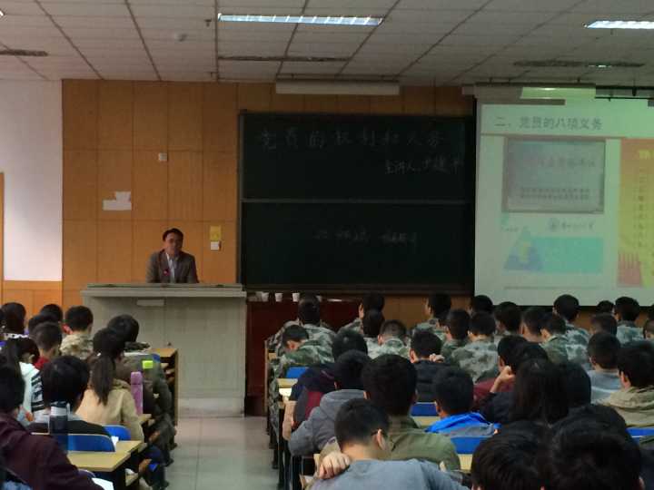 接下来,尹建平老师就“党员的权利与义务”做了具体的讲解。党员的权力与义务是党章的重要内容之一,是与每一个党员密切相关的。尹老师在课上强调,作为一名入党积极分子,同学们不仅要学习理解党员的权利与义务,更要以党员的标准严格要求自己,积极主动承担自己应尽的责任,履行自身承担的义务,努力向党组织靠拢。最后,尹老师祝福此次参加党课培训的同学们,早日加入中国共产党。
