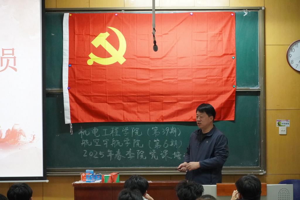 第五讲,航空宇航98堂 党委书记罗建国讲述《对党忠诚,做合格党员》,他从三部分进行讲解:从历史角度看对党忠诚、共产党人如何做到“对党忠诚”、新时代共产党员面临新考验。罗书记勉励大家始终把这32个字记在心中:信念坚定、对党忠诚,坚持原则、严守纪律,牢记宗旨,心系群众,品德高尚、作用突出。新时代共产党员面临着新考验,罗书记勉励同学们坚持增强忧患意识和保持战略定力相统一,时刻坚持底线思维,发扬战斗精神,增强斗争本领。