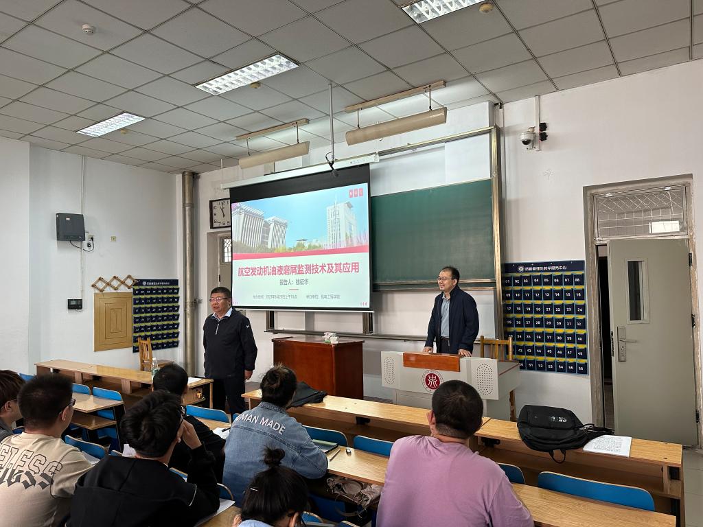 外籍院士、乌克兰国家工程院外籍院士、钱征华教授为98堂研究生做了《航空发动机油液磨削监测技术及其应用》的学术报告,副院长赵河明教授主持。