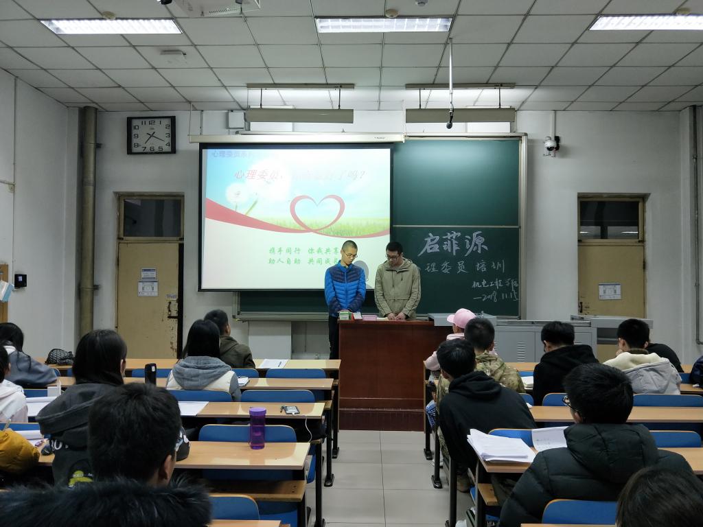 启菲源(心理站)在主楼11206H召开各班心理委员及干事培训讲座,由贺婧老师担任主讲,启菲源所有干部、干事及2018级各班心理委员共同倾听学习,培训会取得圆满成功。