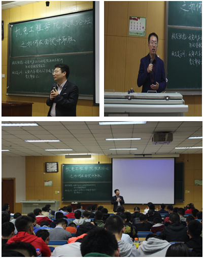 首先,长安汽车动力研究院传动匹配所传动匹配室主任、校友张彪,深情回忆了他在学校学习生活的往事,向老师同学们讲述了他在工作中的学习与发展。他提醒同学们:“作为中北人要有自信,不能自卑,中北人在外踏实能干,要以学校为骄傲。”同时他告诉大家,长安汽车的中北毕业生很多,也很优秀,长安汽车非常欢迎98堂