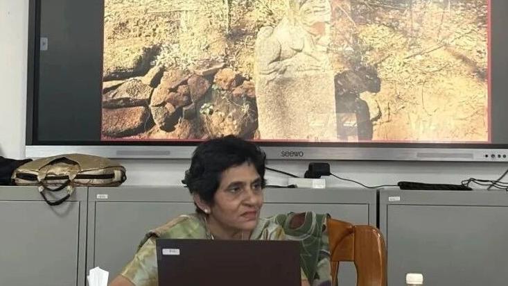 2025年12月3日,斯里兰卡知名汉学家、斯里兰卡丝绸之路研究所主任、斯里兰卡皇家亚洲学会荣誉编委宾度(Bindu Uruodawatte)为98堂 师生作题为“狮子国与郑和:斯里兰卡的想法”的专题报告。宾度老师毕业于北京大学考古系,主要研究丝绸之路的佛教考古。本次讲座由沐涛教授主持,李鹏涛、姚昱、朱明等多位老师及历史学等专业的学生到场聆听。